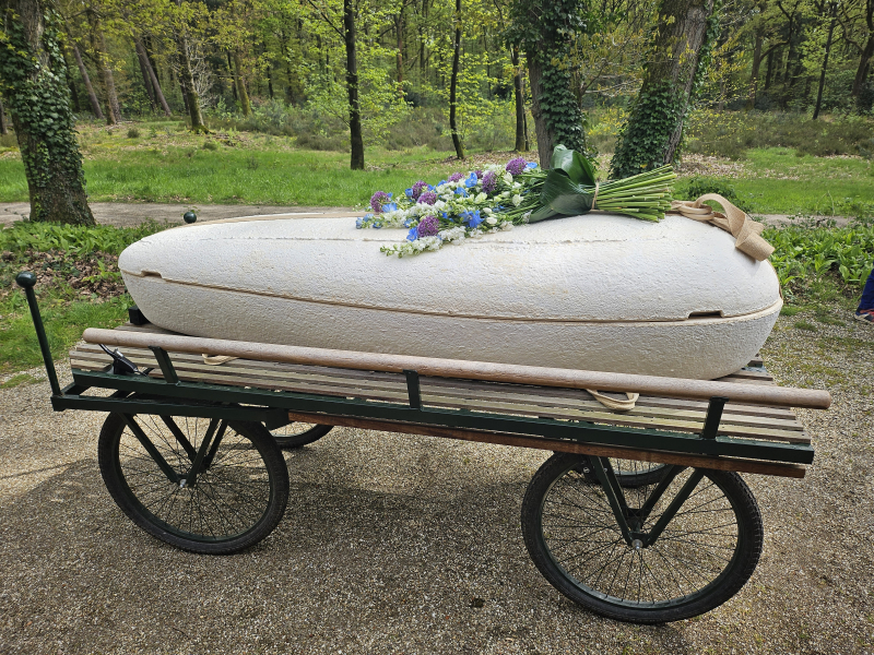 Living CocoonDe Loop Living Cocoon™ is ’s werelds eerste levende doodskist die de natuur verrijkt door in slechts 45 dagen biologisch af te breken en onze voedingsstoffen op de meest natuurlijke manier terug te geven. De Loop Living Cocoon™ wordt in slechts 7 dagen gegroeid in Nederland, van lokale paddenstoelsoorten en upcycled hennepvezels. Hierdoor is het 100% natuurlijk en GreenLeave gecertificeerd. De Cocoon wordt standaard geleverd met een zacht bedje van mos.